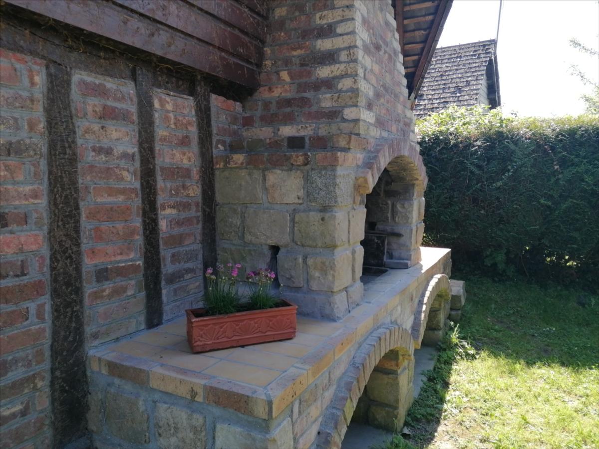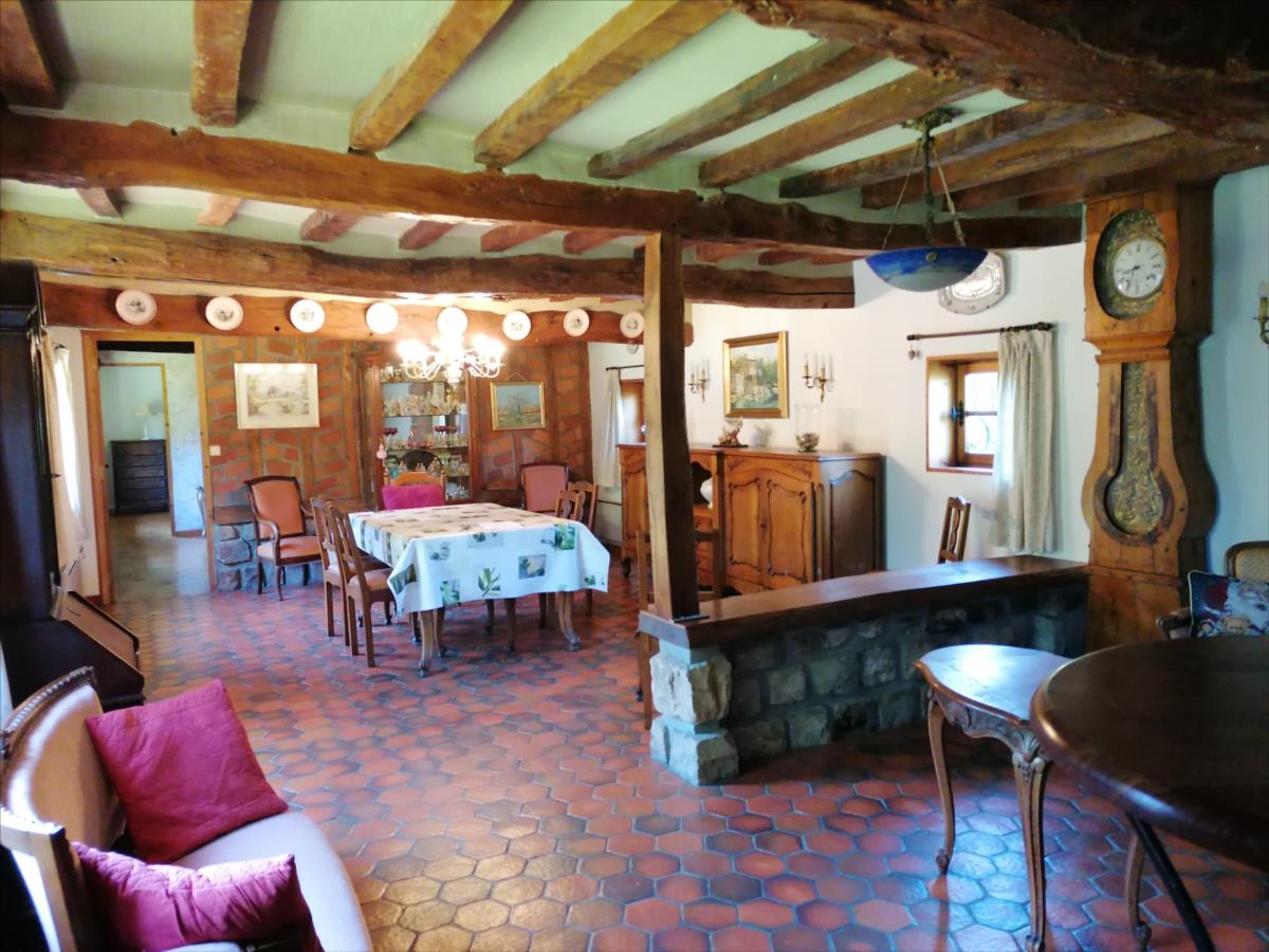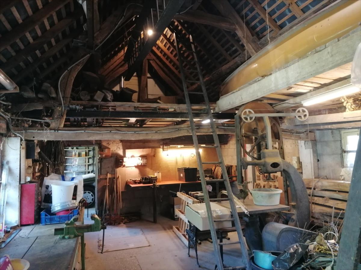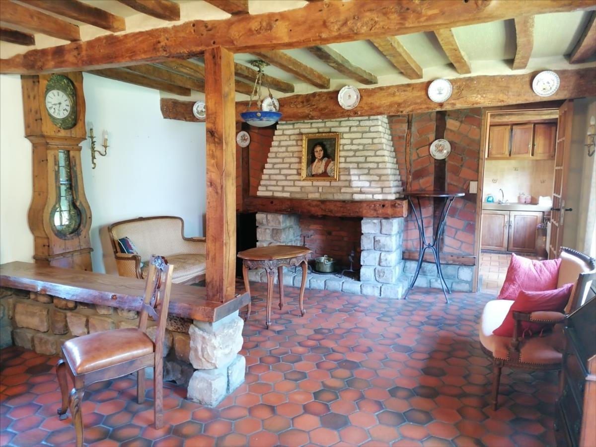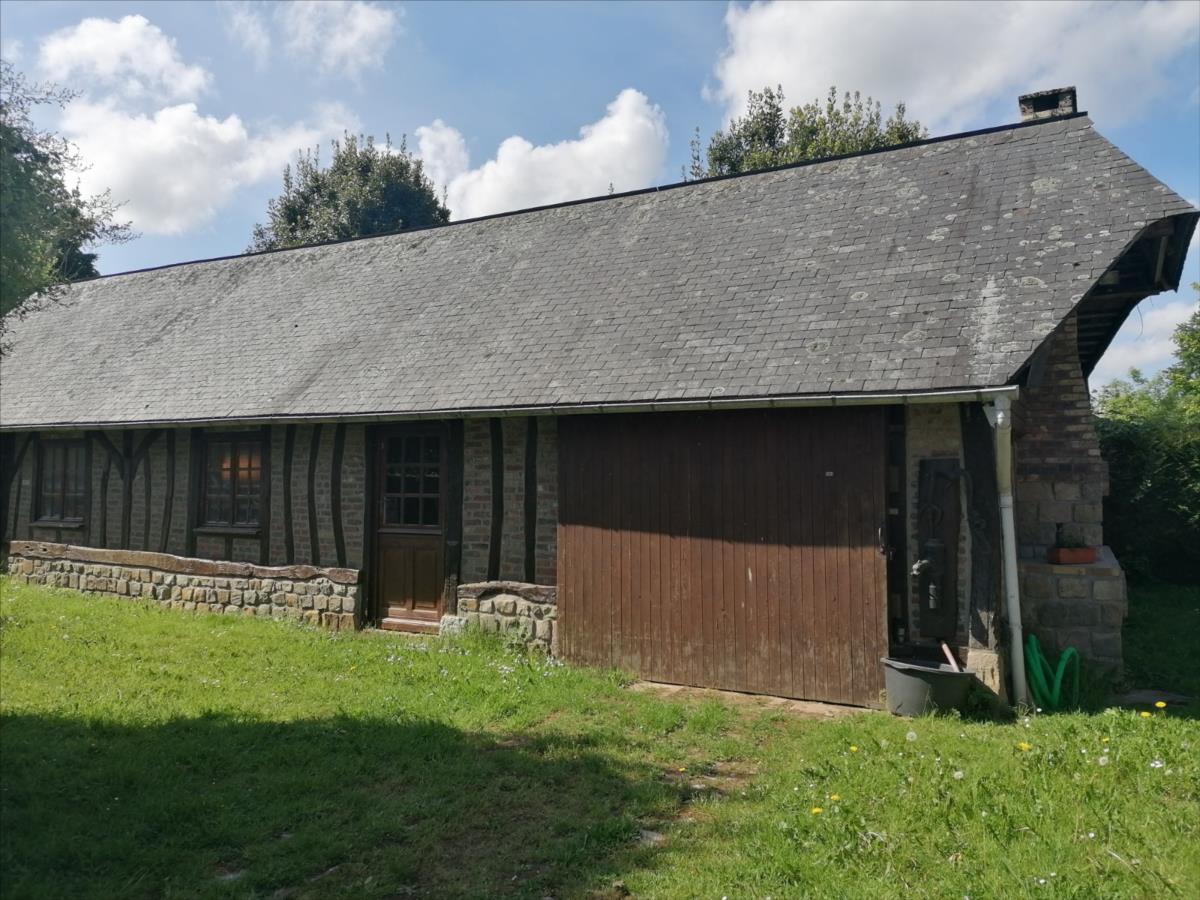 Maison Normande d'une surface habitable d'environ 104 m² élevée d'un rez-de-chaussée divisé en cuisine aménagée et équipée, séjour/salon avec cheminée, deux chambres, salle de bains, WC; d'un étage divisé en deux chambres mansardées; grenier; dépendance dans le style comprenant 2 garages/atelier d'environ 35 m²/pièce + partie grenier; Sur Jardin 920 m² ; Logement à consommation énergétique excessive. Les informations sur les risques auxquels ce bien est exposé sont disponibles sur le site Géorisques : www. georisques. gouv. fr