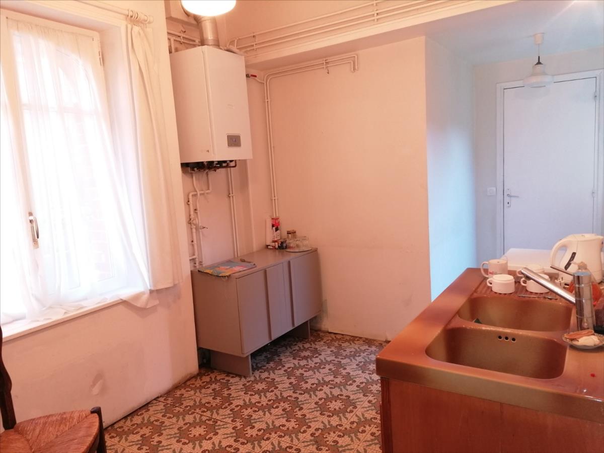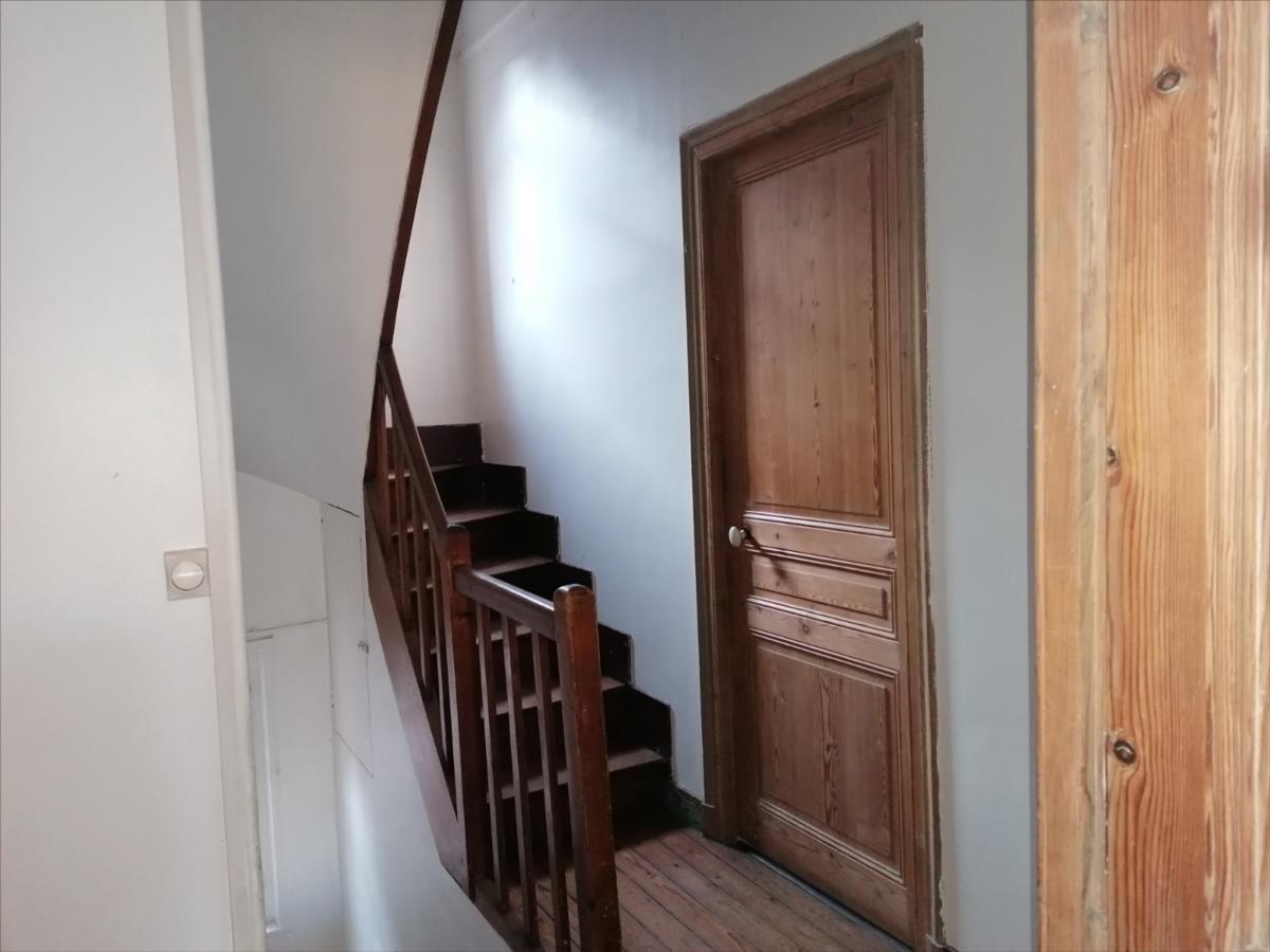 CENTRE VILLE. Maison de Ville 5 pièces d'une surface habitable d'environ 112 m² édifiée sur cave, élevée d'un rez-de-chausée divisé en séjour, cuisine, bureau ou chambre, salle d'eau avec WC; d'un premier étage divisé en palier, trois chambres, salle d'eau avec WC; grenier au-dessus; garage et courette annexe ; Les informations sur les risques auxquels ce bien est exposé sont disponibles sur le site Géorisques : www. georisques. gouv. fr