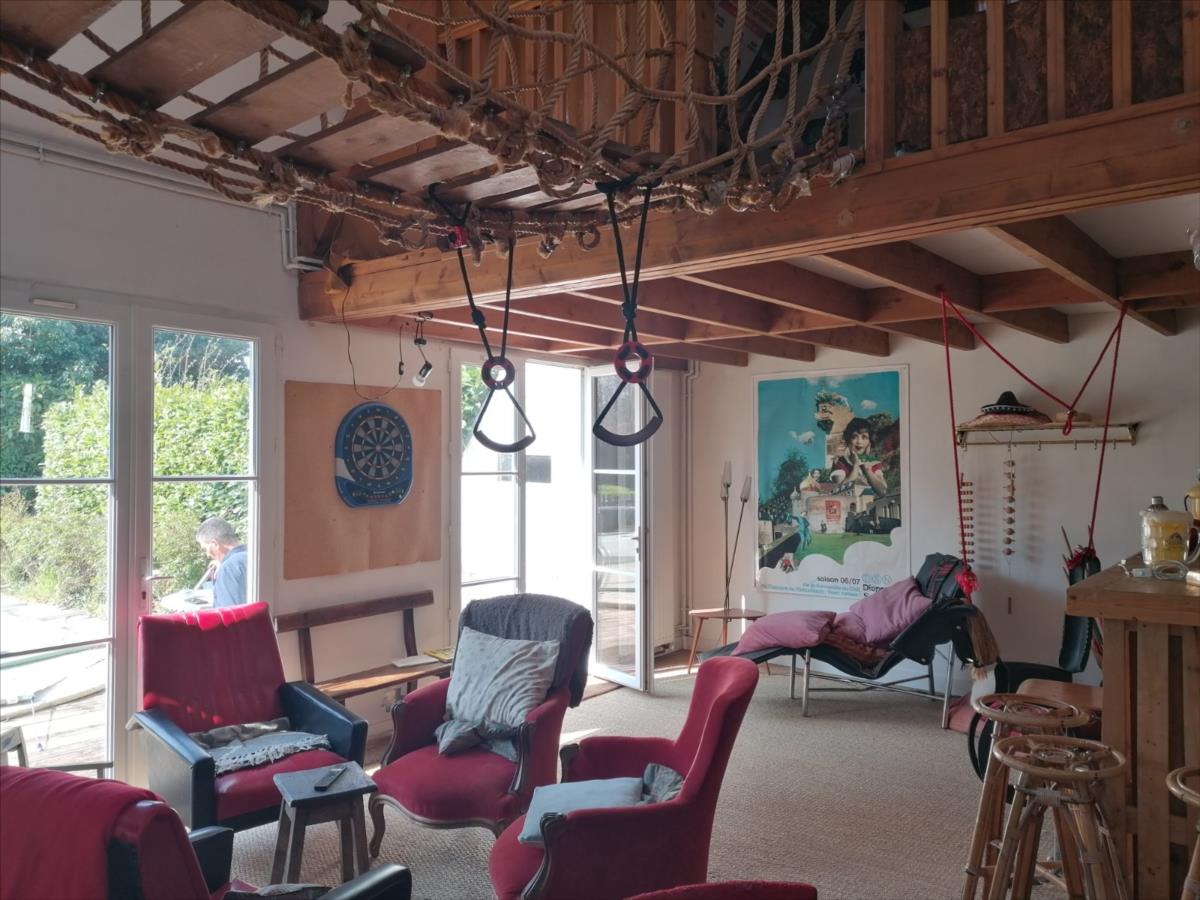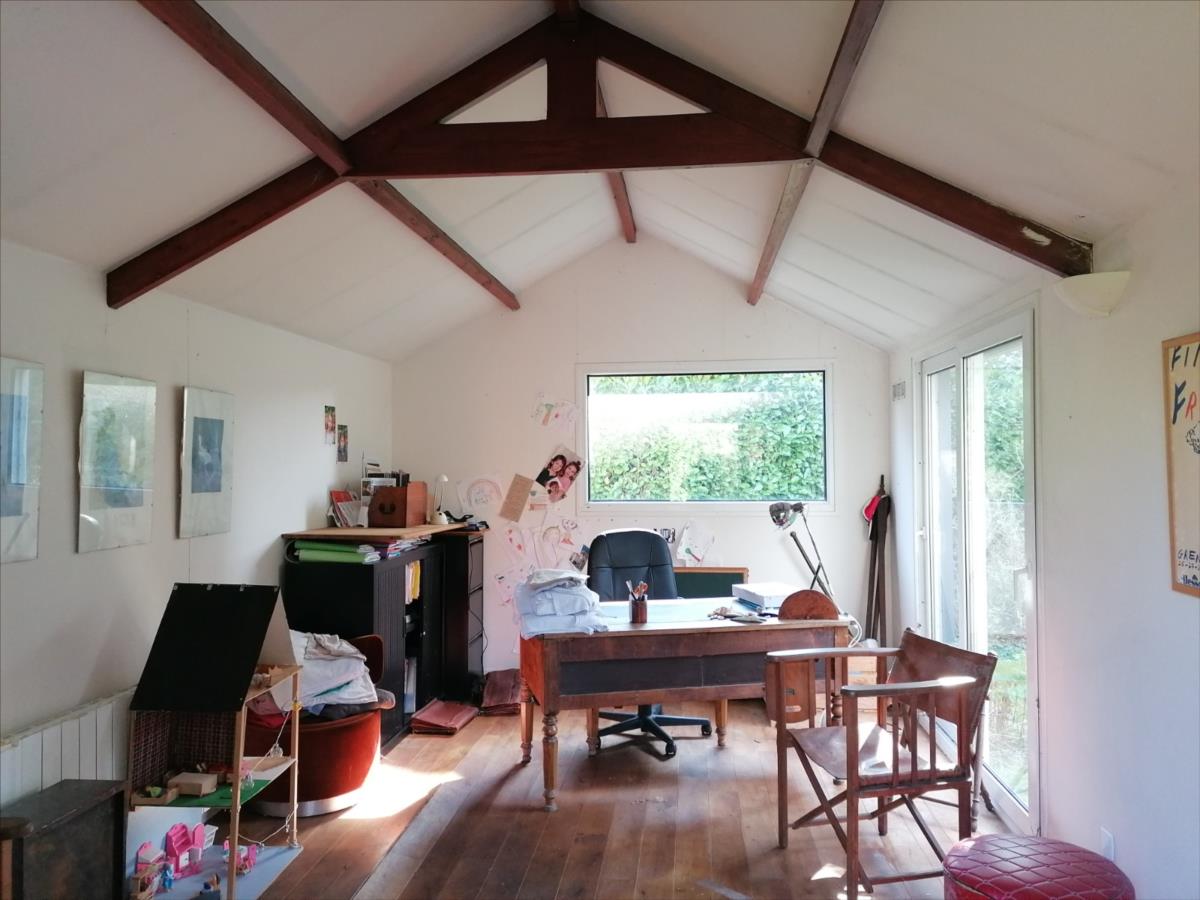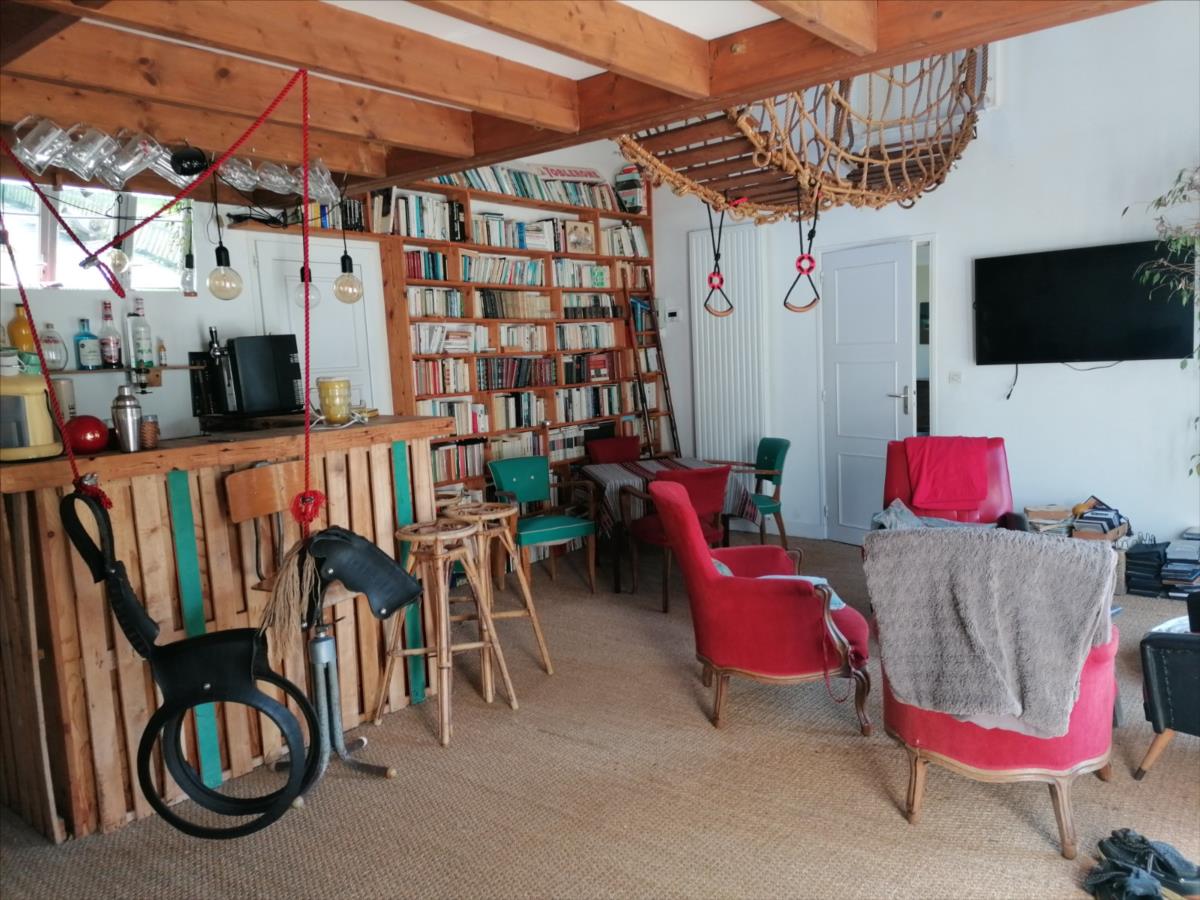 Maison atypique d'une surface habitable d'environ 219 m², à proximité des commerces et services, d'une surface habitable d'environ 219 m² élevée d'un rez-de-chaussée divisé en réception de 40 m² environ, salle contigüe d'environ 33m², cuisine aménagée et équipée avec coin repas, bureau; d'un étage divisé en une chambre principale avec salle d'eau privative, 4 autres chambres, salle de bains; chauffage par pompe à chaleur; espace bureau annexe; Sur Jardin 1.597 m²; Les informations sur les risques auxquels ce bien est exposé sont disponibles sur le site Géorisques : www. georisques. gouv. fr