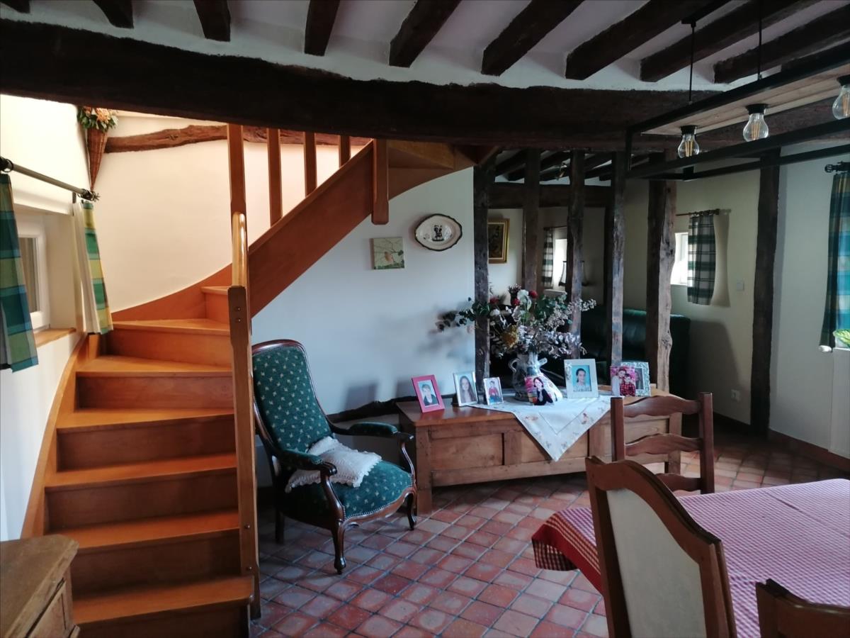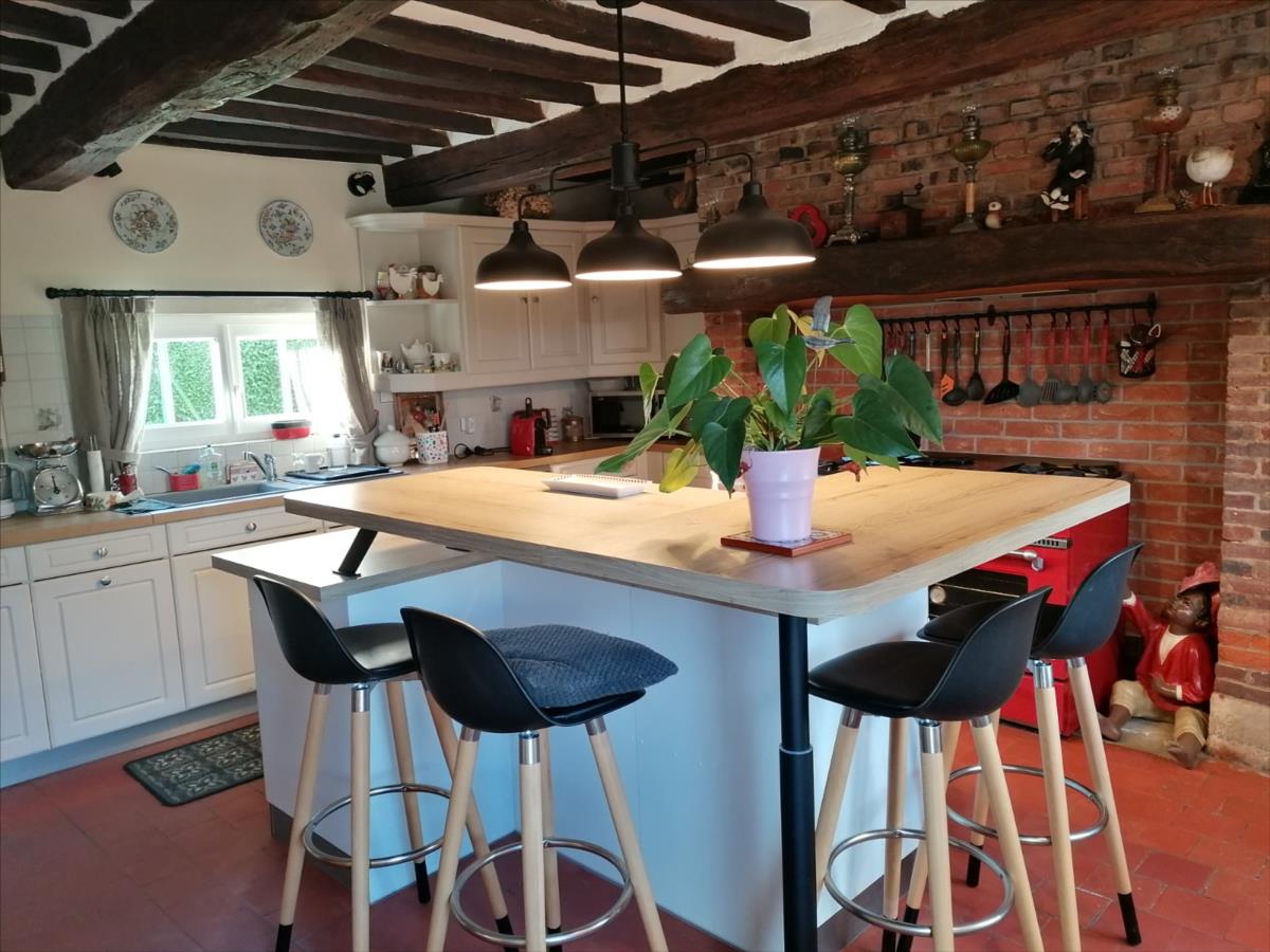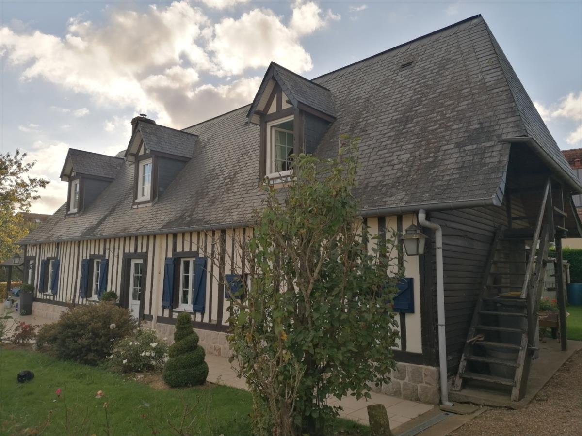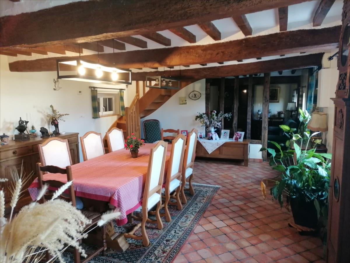 Maison Normande d'une surface habitable d'environ 108 m² élevée d'un rez-de-chaussée divisé en cuisine aménagée et équipée, séjour, bureau ou chambre attenant, salle d'eau avec WC, buanderie; d'un étage divisé en palier, trois chambres; GARAGE indépendant avec grenier; Sur Jardin 1.470 m² Les informations sur les risques auxquels ce bien est exposé sont disponibles sur le site Géorisques : www. georisques. gouv. fr